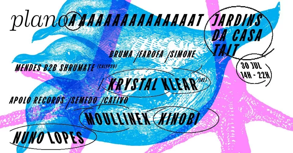 Em três espaços distintos (Palco, Cubo e Galeria), tal como no clube, o cartaz desta primeira edição conta o irlandês Krystal Klear e os nacionais, e habituais do Plano B, Moullinex, Xinobi, Nuno Lopes, Semedo, Cativo, Apolo Records, Mendes e Shrumate (Calypso), Bruma, Simone e Farofa.