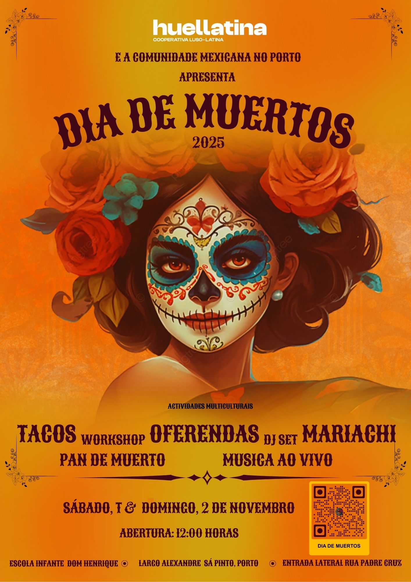 O Día de Muertos da HUELLATINA transforma a cidade num espaço de arte, gastronomia, música e memória.