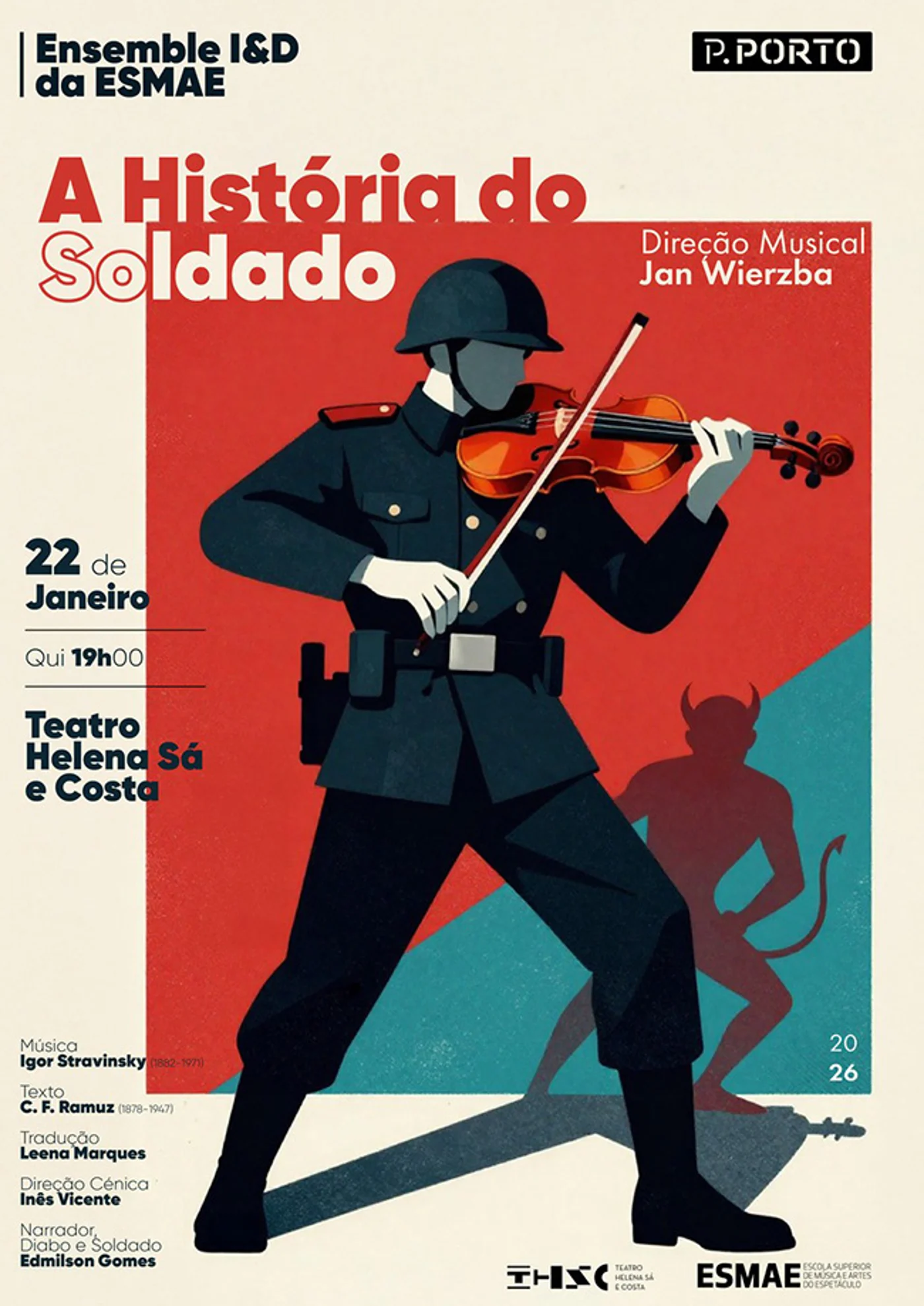 No dia 22 de janeiro, o Teatro Helena Sá e Costa recebe “A História do Soldado”, uma das obras mais emblemáticas do século XX, criada por Igor Stravinsky (música) e C. F. Ramuz (texto).