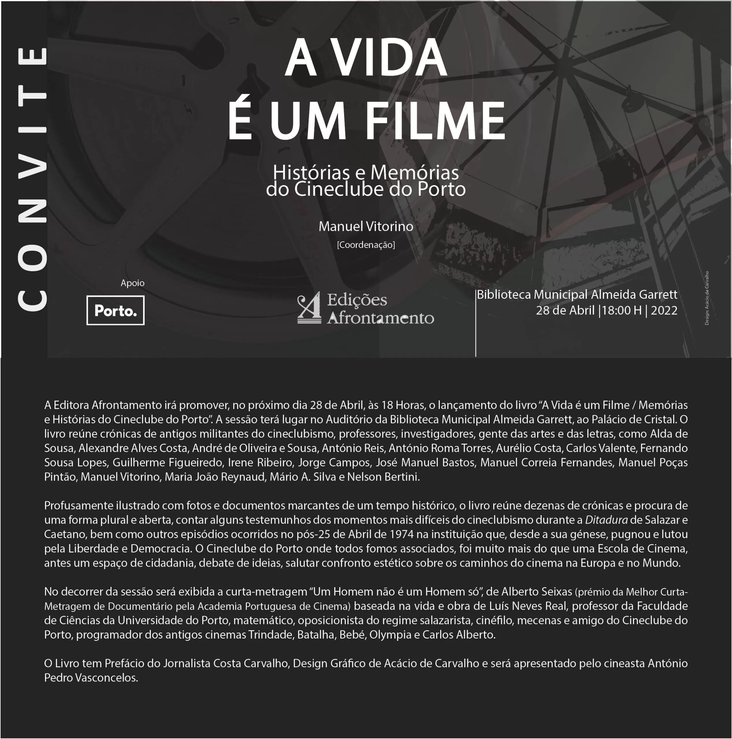 A Vida é um Filme – Histórias e Memórias do Cineclube do Porto A Vida é um Filme – Histórias e Memórias do Cineclube do Porto Data 28 Abr 2022 Desde Hora 18:00 - 20:00 Categorias Cinema Share this event Newsletter Receba comodamente no seu Email os eventos mais relevantes da cidade do Porto. Deixe este campo vazio se for humano: