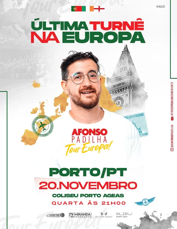 Sinopse: Afonso Padilha traz seu novo solo “Ninguém Se Importa” para Portugal. Durante uma hora, ele explora temas como o fim do mundo, amizades que evoluem para a vida adulta com filhos, medos pessoais e anseios, garantindo uma noite de risos e reflexões baseados em suas experiências.