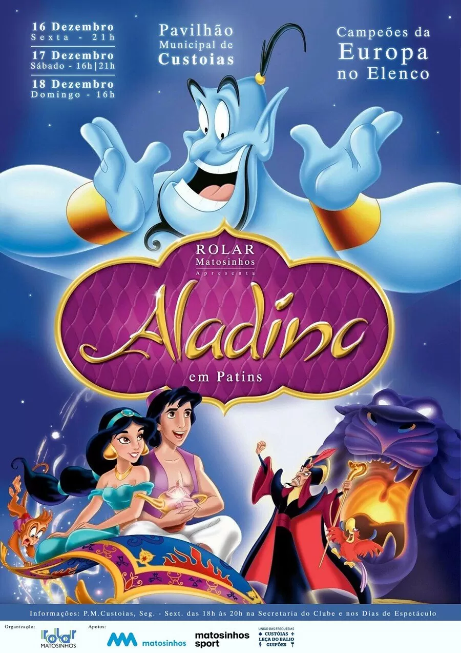 Aladino em Patins Espetáculo de Rolar Matosinhos Fonte: http://www.cm-matosinhos.pt/servicos-municipais/cultura/agenda-cultural-da-amp/evento-79/aladino-em-patins Aladino em Patins Data 18 Dez 2022 Desde Hora 21:00 Localização Pavilhão Municipal de Custóias R. António Sérgio 638, Custóias Categorias DançaEventos ao Fim de semanaInfantilPerformanceTeatroTeatro Infantil Share this event Newsletter Receba comodamente no seu Email os eventos mais relevantes da cidade do Porto. Deixe este campo vazio se for humano: