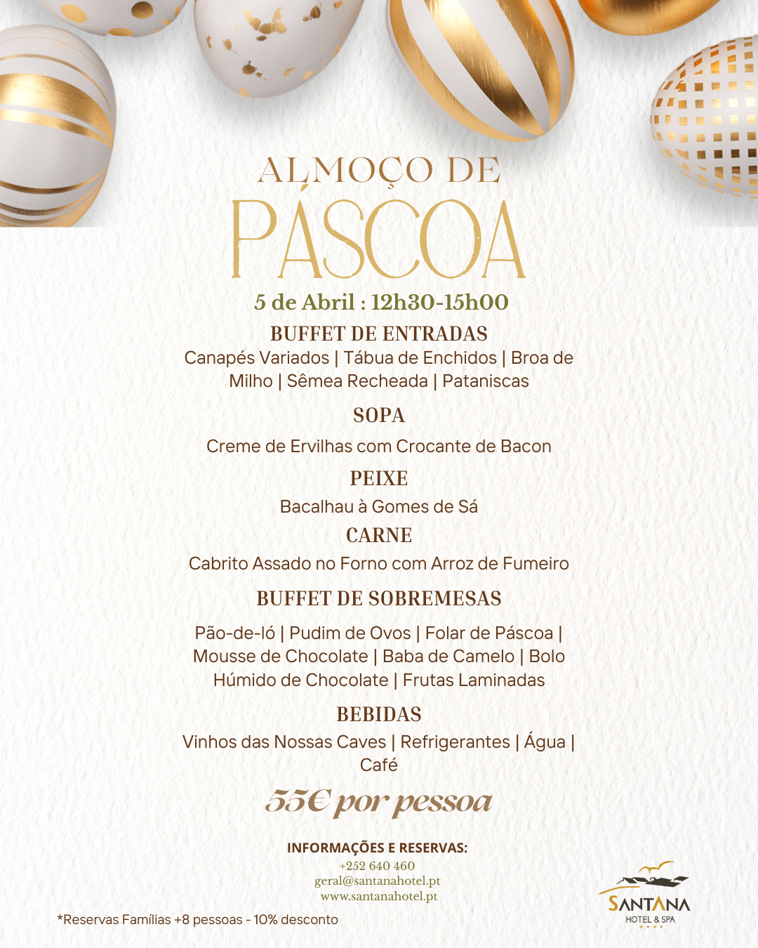 Reúna a família e desfrute de um Almoço de Páscoa especial, pensado para partilhar momentos únicos à mesa. Entre sabores tradicionais e um ambiente acolhedor, preparámos um buffet recheado de opções que prometem tornar este dia ainda mais especial.
