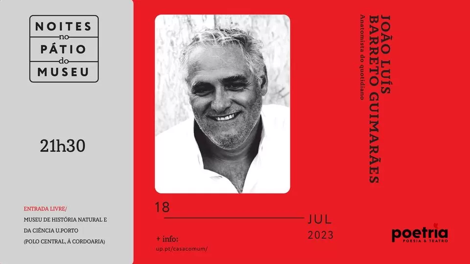Além de poeta e tradutor, João Luís Barreto Guimarães, que nasceu no Porto em junho de 1967, é médico, professor de poesia no ICBAS/Universidade do Porto, e publicou o primeiro livro de poemas, Há Violinos na Tribo, em 1989. Depois desse, seguiram-se Rua Trinta e Um de Fevereiro (1991), Este Lado para Cima (1994), Lugares Comuns (2000), 3 (poesia 1987-1994), em 2001, Rés-do- Chão (2003), Luz Última (2006) e A Parte pelo Todo (2009). Em 2022 recebe o Prémio Pessoa.
