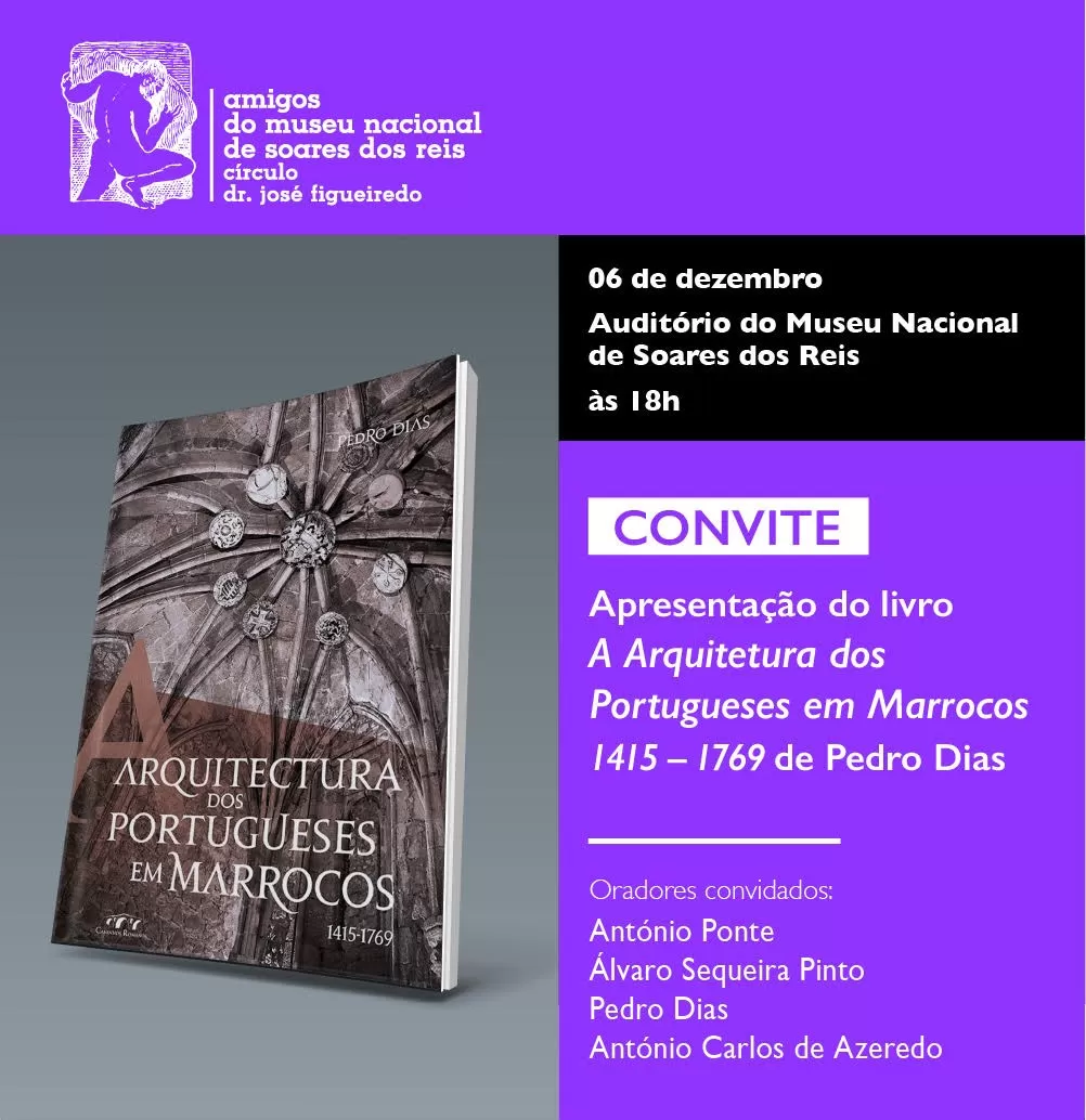 Agora que se completam 20 anos sobre a entrega do Prémio Gulbenkian de História da Arte ao Professor Doutor Pedro Dias pelo seu livro, o Presidente do Círculo Dr. José de Figueiredo, o Diretor do Museu Nacional Soares dos Reis e o Diretor da Editora Caminhos Romanos convidam para a apresentação do livro “A Arquitetura dos Portugueses em Marrocos 1415-1769”.