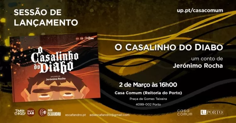 As Edições Escafandro, a Take it Easy, o Easylab e a Casa Comum convidam-vos para o lançamento do livro O Casalinho do Diabo, obra de estreia de Jerónimo Rocha (texto e ilustração). Além do formato físico, o projeto inclui ainda um protótipo digital interativo que será também desvendado.