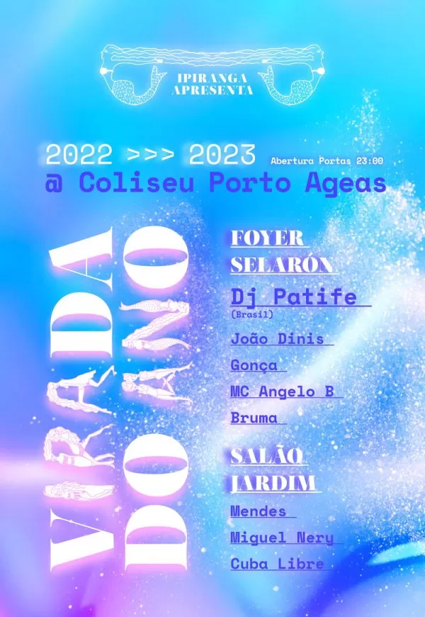 Foi nas margens do rio Ipiranga, um pequeno riacho localizado no centro de São Paulo, que a 7 de setembro de 1822, D. Pedro (governador do Brasil nomeado pelo seu pai, rei D.João VI), junto dos seus companheiros, comunicou a independência do Brasil do domínio português, desobedecendo a ordens diretas enviadas de Portugal.Passados 200 anos, a relação entre os irmãos Portugal e Brasil vive um clima de respeito, carinho, amizade e união, o que permite, após ultrapassados alguns eventos históricos, fomentar o crescimento de projetos, colaborações e intercâmbios entre ambos.Foi neste ambiente que nasceu o nosso baile, com o intuito de celebrar a vida, a música, a cultura e a diversidade. Depois de várias produções no Ateneu Comercial do Porto e uma estreia na cidade maravilhosa (Rio de Janeiro), apresentamos numa das salas mais emblemáticas do nosso país (situado no coração da nossa cidade), a nossa décima edição.Desta feita, no dia 31 de dezembro a partir das 23 horas, marcamos encontro no Coliseu do Porto Ageas para abraçar com muito amor no coração, mais uma Virada do Ano” (a primeira pós pandemia), da forma mais especial possível, entre amigos.Foyer SelarónDj PatifeJoão DinisGonçaMC Angelo BBrumaSalão JardimMendesMiguel NeryCuba Livre