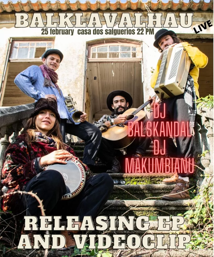 Já no dia 25.02 Balklavalhau volta a balkanizar Porto com surpresas escandalosas! Depois de vários meses de criação intensa, finalmente todos vão poder levar um pouco de Balklavalhau a casa em formato do EP que vamos lançar no dia 25.02. Além disso, o nosso novo videoclipe está já prontinho para ser estreado naquele grande dia! E porque coisas boas sempre andam juntas, DJ Balskandal e DJ Makumbianu vão nos fazer dançar até cair! Vamos festejar!