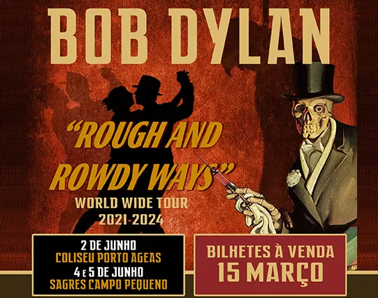 Bob Dylan chega a Portugal com três concertos imperdíveis: dia 2 de junho no Coliseu Porto AGEAS e nos dias 4 e 5 de junho no Sagres Campo Pequeno em Lisboa. Os bilhetes ficam disponíveis no dia 13 de março, às 10h, em everythingisnew.pt e nos locais habituais.