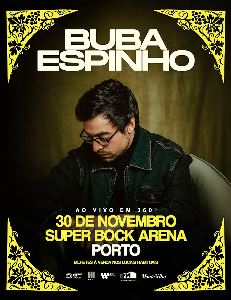 After selling out venues across the country, Buba Espinho brings a special celebration of Cante Alentejano and Portuguese music to the Super Bock Arena. This unique show takes the audience on a journey through his roots, from the deep Alentejo to Lisbon’s Fado, exploring the sounds that inspired him and the paths he has followed with artists from various generations and styles. With a band, special guests, and immersive scenography, the Super Bock Arena will host an experience designed for all audiences.