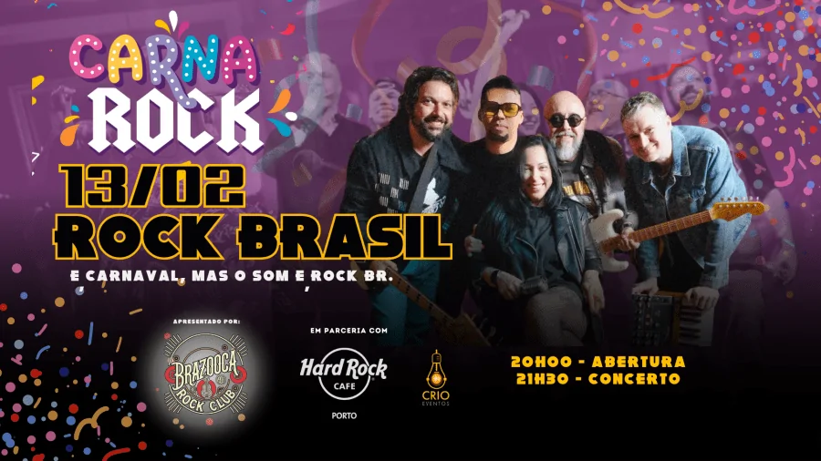 O Hard Rock Cafe Porto recebe no dia 13 de fevereiro, das 19h00 às 23h30, o CarnaRock Crio, uma noite de sexta-feira de Carnaval ao som do melhor do Rock brasileiro.