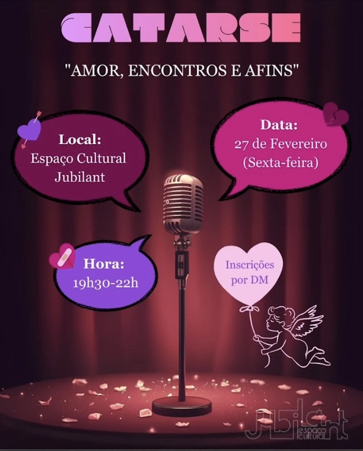 EN: It is with great joy and enthusiasm that we announce the second edition of Catarse – Historias Reais, at the Espaço Cultural Jubilant.