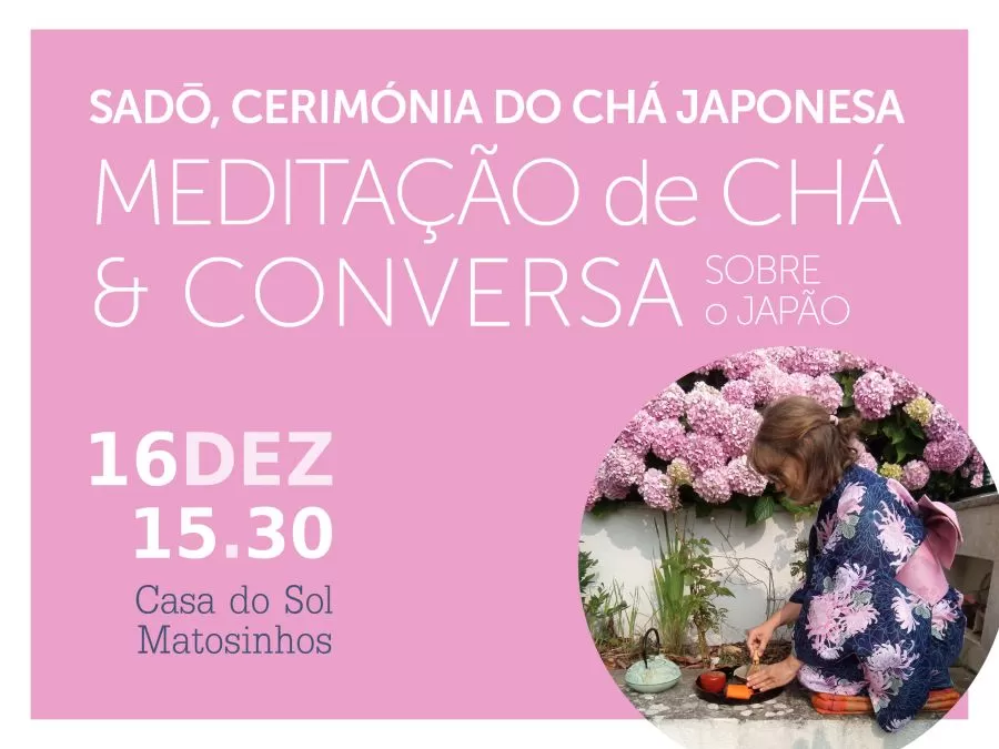 Ao sabor formal de um wagashi, um doce tradicional japonês, que acompanha matcha e celebra-se cos-ltumes de inverno e fala-se casualmente de tradições e costumes japoneses, do então e do agora. Sadō, chamado em português de cerimónia de chá, significa literalmente o “caminho do chá”. Tradicionalmente o ritual acontece numa sala própria com tatami (chashitsu) e tanto o anfitrião como os convidados, de roupa formal, se sentam sobre as pernas em (seiza). Será abordada brevemente a história de sadō, que conta com quase cinco séculos, demonstrado as suas diferentes vertentes: artística, religiosa, filosófica, ética, ascética e social. Nos seus diversos desenvolvimentos, a filosofia Zen é uma constante, e por isso, sadō é considerado uma experiência de atenção plena ao momento em si. Zen influenciou a arquitetura da chashitsu, a escolha dos utensílios, assim como as flores e doces (wagashi) de acordo com a estação e/ou mês.