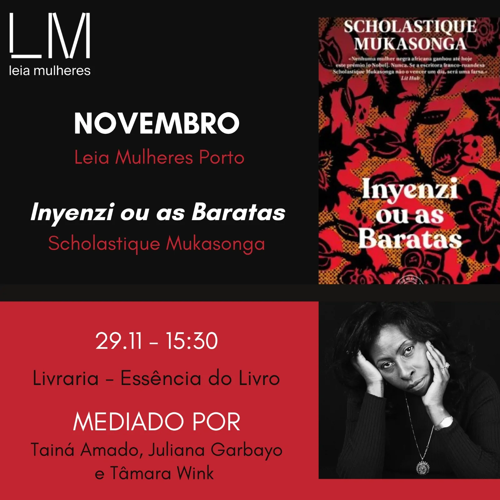 Clube do livro mensal e gratuito aberto a todos independentemente do gênero. Todo último sábado do mês (excepto dezembro) nos encontramos para discutir um livro de autoria feminina anunciado previamente nas redes sociais do grupo (instagram @leiamulheresporto). O livro de novembro é Inyenzi ou as baratas, de Scholastique Mukasonga.