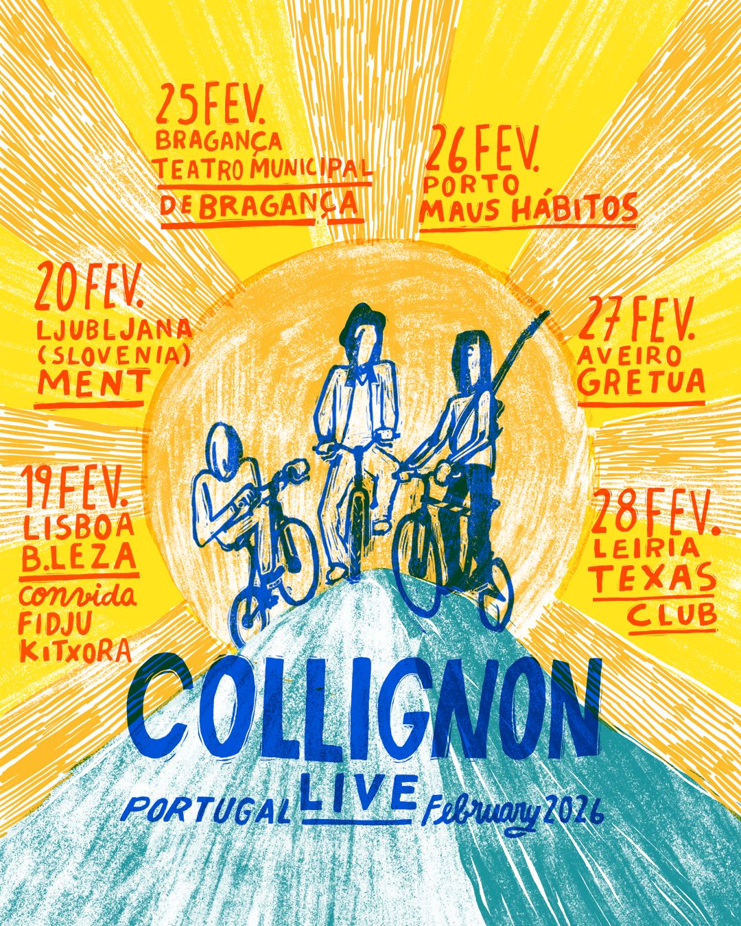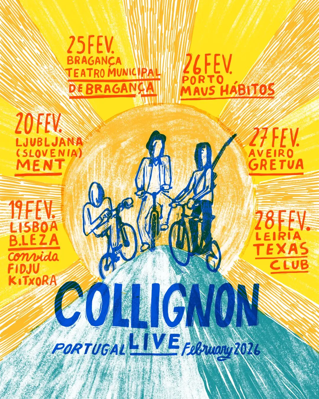 A primeira data da digressão é em Lisboa, no dia 19 de fevereiro. COLLIGNON estará ao vivo no clube B.Leza e convida Fidju Kitxora para a fogueira. Conhecido pela rave sombria que corre como lava negra sobre as terras de Cabo Verde, Fidju e Jori fundem-se, depois do concerto de COLLIGNON, num set original onde exploram novos territórios de diálogo.