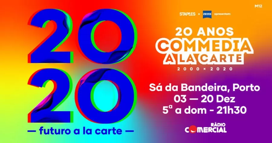 César Mourão, Carlos M. Cunha e Gustavo Miranda celebram os 20 anos de Commedia a la Carte em 32 sessões do seu novo espectáculo “2020 Futuro a la Carte”, que tem por mote a tecnologia. São 12 sessões no Teatro Sá da Bandeira, no Porto, entre os dias 3 e 20 de Dezembro, quintas ,sextas-feiras, sábados e domingos, sempre às 21H30