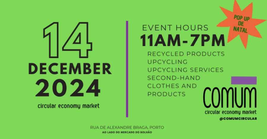 On December 14th, 2024, come and join the Comum – Circular Economy Market, an event dedicated to promoting sustainability and the circular economy. Get inspired and discover a variety of eco-friendly products and activities crafted with care for the environment.