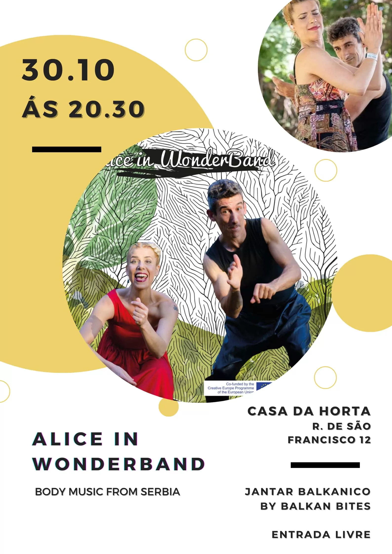 Alice in WonderBand é um duo que combina música dos Balcãs com música corporal e percussão corporal. A sua atuação é vibrante e rítmica, poderosa e enérgica, o cruzamento de música, dança e movimento de palco – uma experiência profunda e primordial que leva o público numa viagem pelos Balcãs, bem como às profundezas do ser.