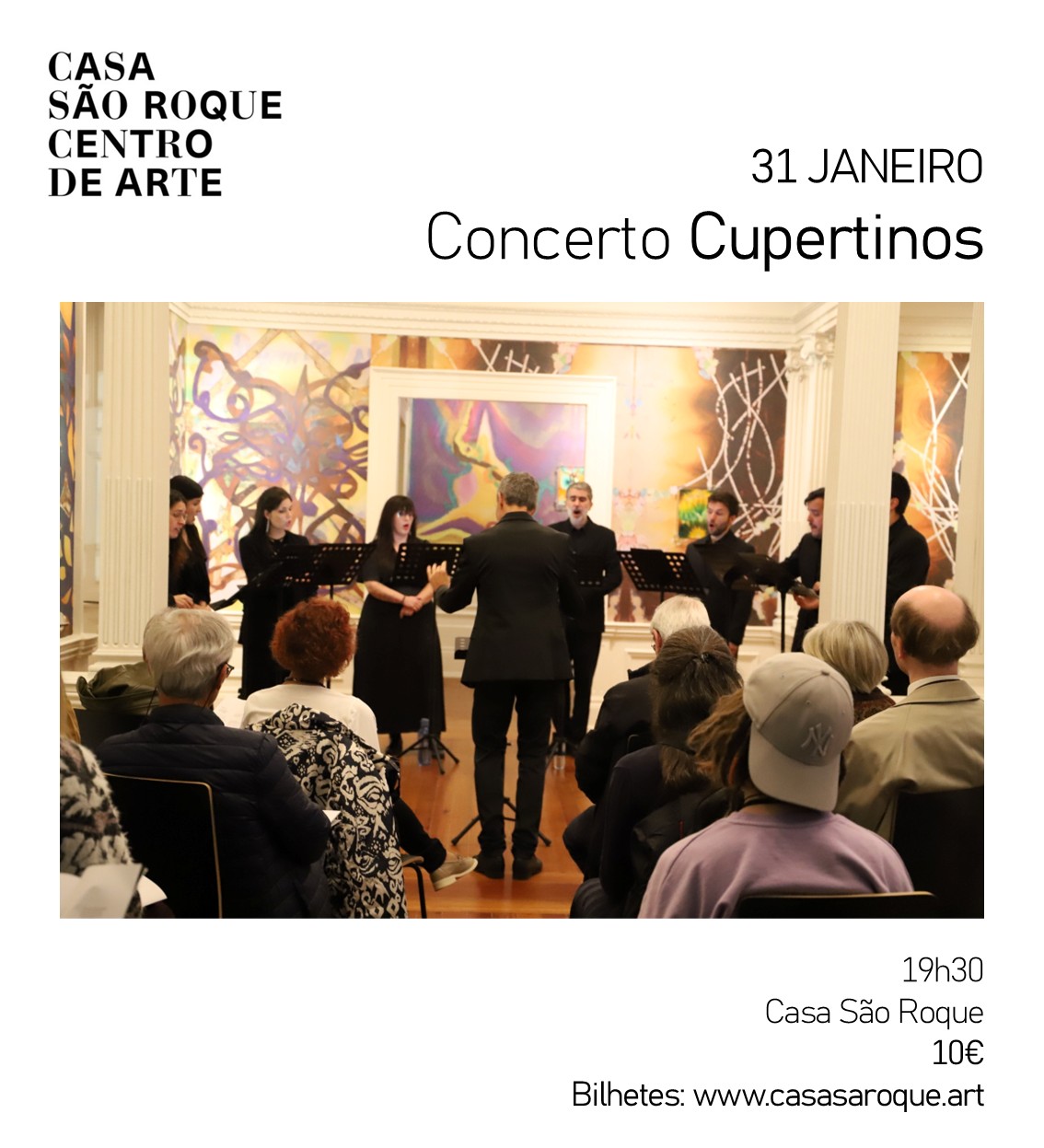 ✨ Testemunhe a Excelência ao Vivo! No dia 31 de Janeiro às 19h30, os Cupertinos estarão presentes na Casa São Roque para mais um concerto único. Prepare-se para uma experiência sensorial inigualável, onde a harmonia das vozes se entrelaça com a atmosfera histórica da Casa.