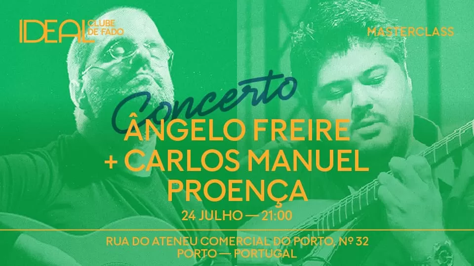 Dia 24 de Julho às 21:00 temos a honra de receber Ângelo Freire e Carlos Manuel Proença para a abertura de um ciclo de concertos mensais dedicados à guitarra portuguesa.
