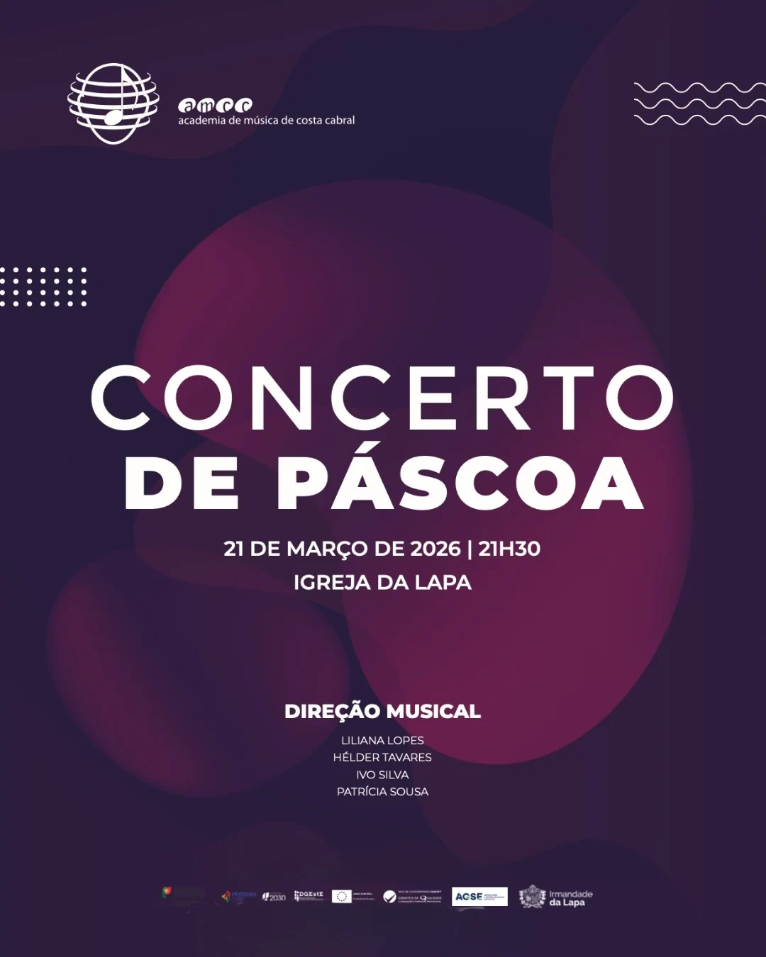 A Igreja da Lapa será palco do Concerto Solidário de Páscoa da Academia de Música de Costa Cabral. Uma noite que dará destaque ao talento e à dedicação dos jovens músicos, expressão viva de futuro e esperança. Durante o concerto será realizada uma recolha de bens higiene pessoal (fraldas para adultos e crianças, gel de banho, pasta dentífrica, creme hidratante, desodorizante, entre outros). 𝐎𝐬 𝐛𝐞𝐧𝐬 𝐫𝐞𝐜𝐨𝐥𝐡𝐢𝐝𝐨𝐬 𝐫𝐞𝐯𝐞𝐫𝐭𝐞𝐦 𝐚 𝐟𝐚𝐯𝐨𝐫 𝐝𝐚 𝐂𝐨𝐧𝐟𝐞𝐫𝐞̂𝐧𝐜𝐢𝐚 𝐕𝐢𝐜𝐞𝐧𝐭𝐢𝐧𝐚 𝐝𝐞 𝐒. 𝐉𝐨𝐬𝐞́ 𝐝𝐚 𝐋𝐚𝐩𝐚.