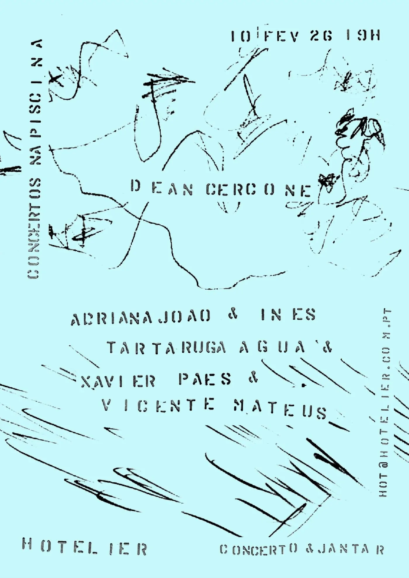 No dia 10 de fevereiro de 2026, o Hotelier recebe uma noite única de música experimental e performance artística com alguns dos nomes mais criativos da cena contemporânea portuguesa. O evento faz parte da série Concertos na Piscina, promovida pelos próprios artistas, e os donativos são a única forma de retribuição pelo seu trabalho, sendo agradecida a generosidade do público.