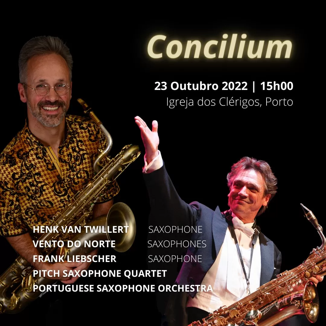 Throughout this concert, in addition to solo performances by Henk van Twillert and Frank Liebscher, various musical formations will be presented, such as the saxophone quartet, the “Pitch Saxophone Quartet”, saxophone ensemble, Vento do Norte, and Orquestra de Saxophones, The Portuguese Saxophone Orchestra.