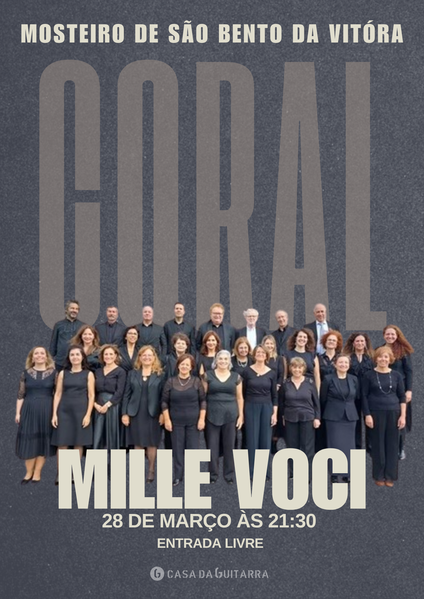 No dia 28 de março, pelas 21h30, o Coral Mille Voci apresenta um concerto de profunda expressão espiritual no Mosteiro de São Bento da Vitória. De entrada livre, este será um momento de encontro com a música sacra coral, num dos espaços patrimoniais mais emblemáticos da cidade.