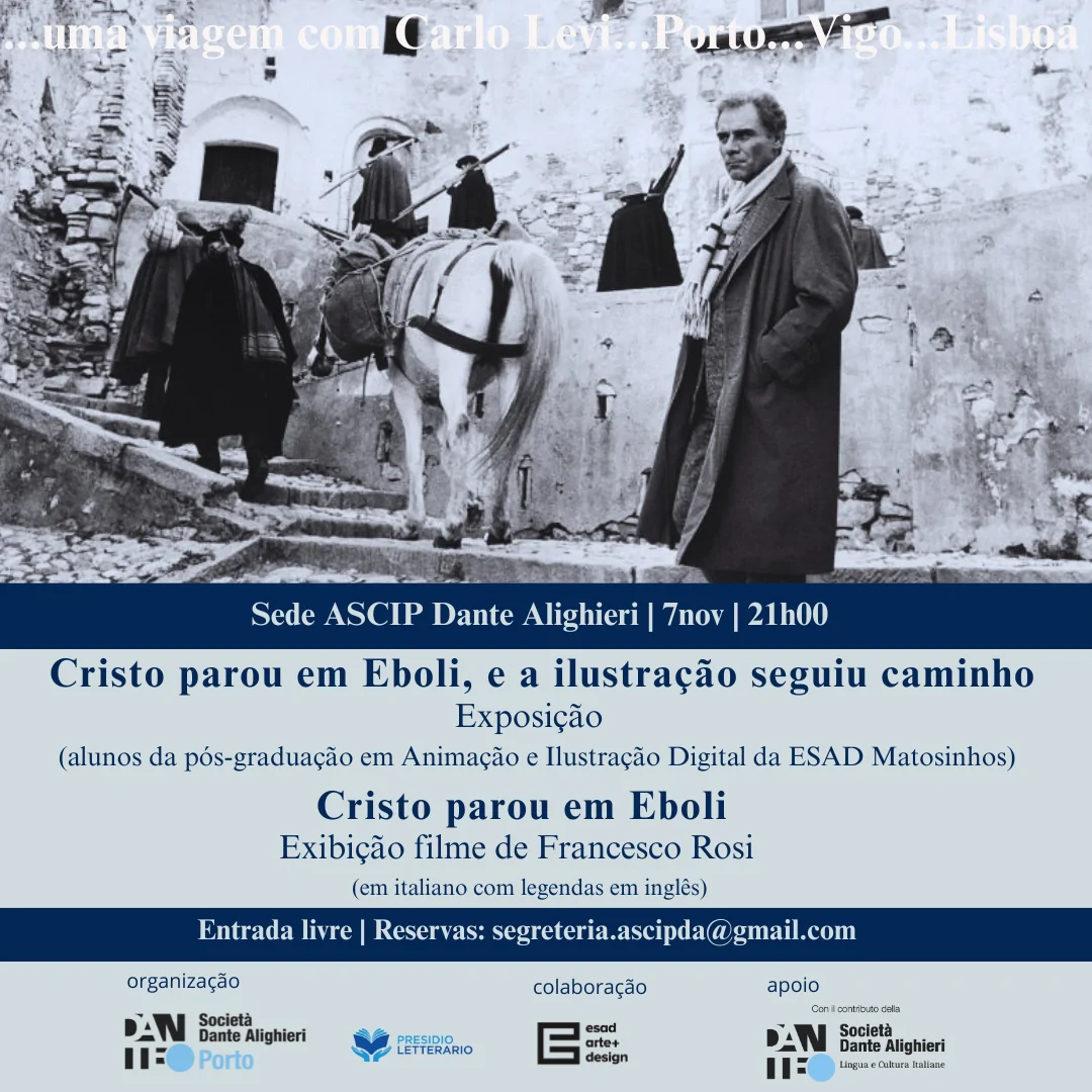 21h00 — “Cristo parou em Eboli – e a ilustração seguiu caminho”: inauguração da exposição de ilustrações inspiradas em Cristo parou em Eboli, realizadas pelos alunos da ṕós-graduação em Animação e Ilustração Digital da ESAD (Escola Superior de Artes e Design) de Matosinhos. Trata-se do momento final de um importante projeto pedagógico desenvolvido no âmbito do projeto. Será certamente de extremo interesse ver como os ilustradores interpretaram o imaginário e as atmosferas do romance de Carlo Levi, e a variadede de estilos e linguagens artísticas presentes.