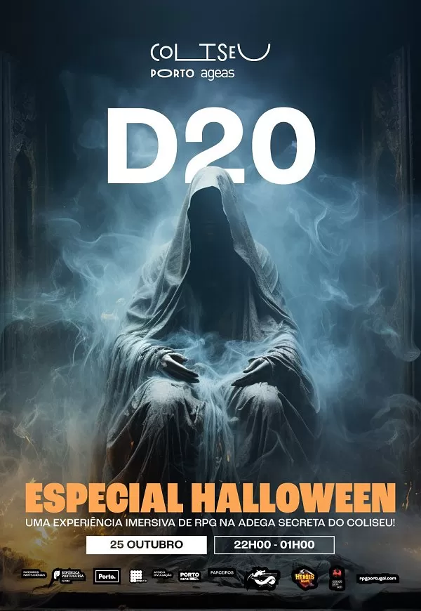 O Coliseu Porto Ageas vai transformar-se na noite de 25 de outubro, trazendo uma experiência assustadora para os amantes de RPGs (Role Playing Games), com o D20 Coliseu Especial Halloween! Prepare-se para uma noite imersiva e cheia de mistério, com jogos temáticos e um ambiente assombroso, perfeito para o espírito de Halloween.