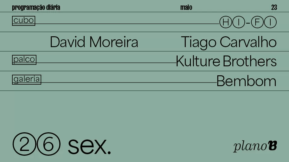 David Moreira, Tiago Carvalho, Kulture Brothers, Bembom David Moreira, Tiago Carvalho, Kulture Brothers, Bembom Data 26 Mai 2023 Desde Hora 22:00 Localização Plano B Rua Cândido dos Reis nº30 4050-150 Porto Website https://agendaculturalporto.org/agenda-plano-b-porto/ Categorias Clubbing | NightlifeConcertos / MúsicaEventos ao Fim de semana Share this event Newsletter Receba comodamente no seu Email os eventos mais relevantes da cidade do Porto. Deixe este campo vazio se for humano: