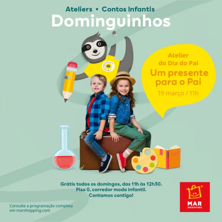 Um presente que o vai deixar felicíssimo e que é amigo do ambiente. Como é costume, os “Dominguinhos” terão lugar entre as 11h00 e as 12h30, no corredor de Moda Infantil do MAR Shopping Matosinhos, Piso 0. A celebração do Dia do Pai no MAR Shopping Matosinhos será pautada por momentos de absoluta ternura entre pequenos e graúdos, certamente difíceis de esquecer!