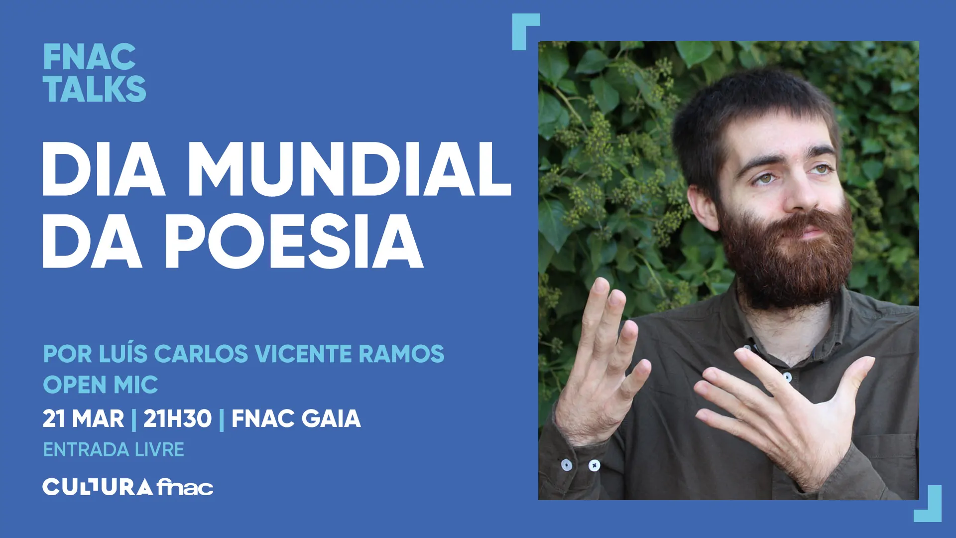Vem celebrar o Dia Mundial da Poesia com a FNAC! Este ano, trazemos-te a leitura de poemas do projeto digital de divulgação cultural “O Cravo de Tunes”! E no final há microfone aberto! Vem ler os teus poemas e celebra connosco! Contamos contigo!