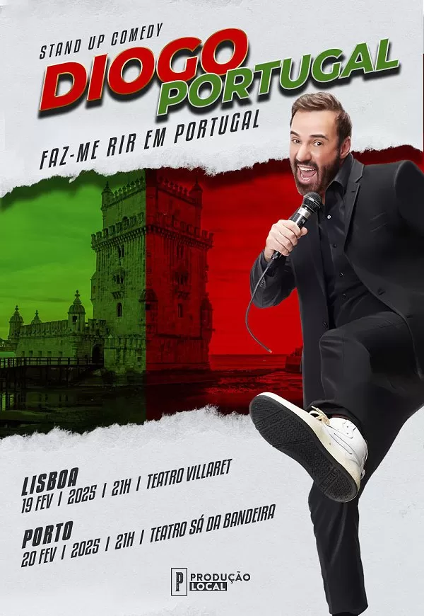 “FAZ ME RIR PORTUGAL” é o seu mais recente espetáculo, onde ele traz uma nova visão dos acontecimentos atuais da cidade e personaliza as piadas com toques regionais, criando uma conexão ainda mais forte com o público. Durante a apresentação, os moradores de Porto se sentirão ainda mais próximos do show, pois Diogo compartilha histórias e hábitos locais, proporcionando uma experiência divertida e única.