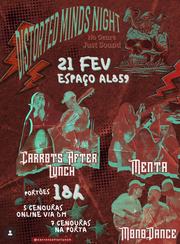 A Disturbed Minds Night promete agitar o final de tarde e início de noite de 21 de fevereiro com uma celebração da música alternativa no Espaço AL859, reunindo três projetos emergentes da cena independente: Menta, Monodance e Carrots After Lunch.