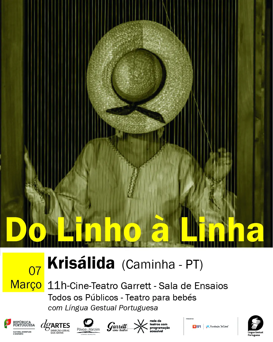 Do Linho à Linha é um espetáculo para bebés que se traduz numa viagem sensorial pelo mundo dos bordados, dos tecidos, das suas texturas, cores e feitios.
