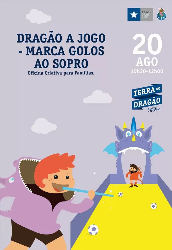 A nova época está a começar e, por isso, há novos golos do Dragão para festejar! Nesta oficina pedagógica e muito divertida, o Museu Futebol Clube do Porto ajuda-te a ser um goleador em todo o lado onde estiveres, mas terás de usar criatividade, juntar umas quantas técnicas e ideias especiais que temos para partilhares contigo e aproveitar a ajuda dos adultos acompanhantes para construíres o teu campo de jogo e de vitórias! Depois, com o poder do sopro, vais acertar em cheio dentro da baliza e festejar golos e mais golos durante toda a época! Com tanta pontaria, serás um Dragão ainda mais vencedor! A atividade tem a marca de referência do Serviço Educativo do Museu FC Porto.