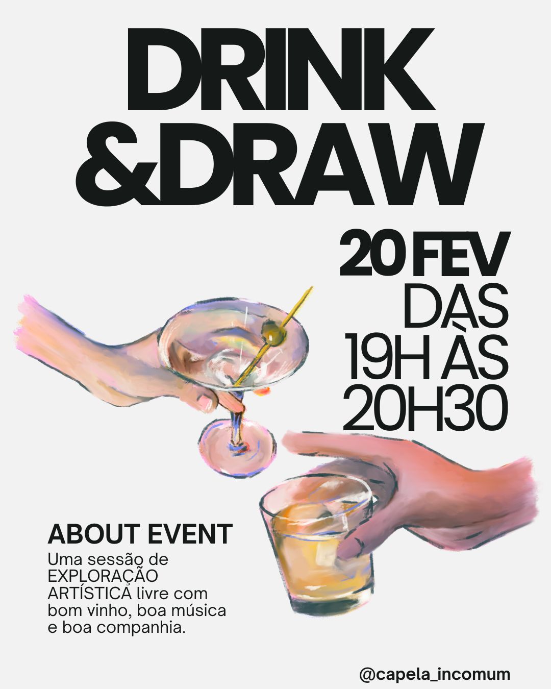 DRINK &; DRAW Uma sessão de Exploração Artística livre com bom vinho, boa música e boa companhia
