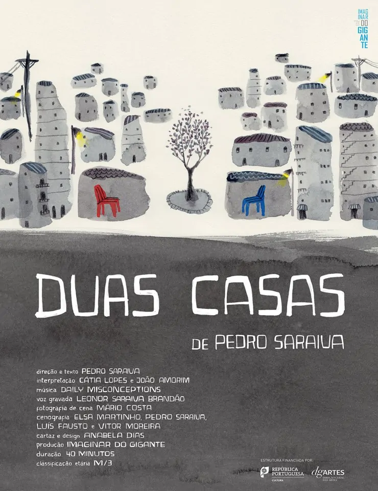 DUAS CASAS convida crianças e adultos a mergulharem em pequenas histórias de casas e vidas, contadas através da arte das marionetas, num espetáculo sensível e envolvente, ideal para despertar a criatividade e a atenção ao detalhe.