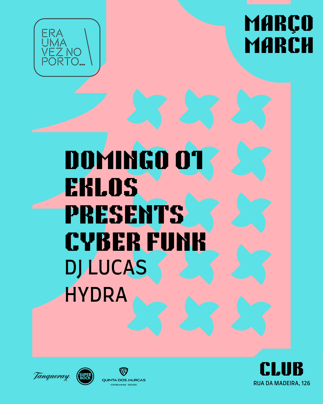 Eklos presents CYBER FUNK … Domingo, 01/03/2026 23h59/6h00 Eklos presents CYBER FUNK 🎧 DJ Lucas 🎧 Hydra . . + Adicionar ao Google Calendar Data 01 - 02 Mar 2026 Hora 23:55 - 6:00 Localização Era uma vez no Porto R. da Madeira 126, 4000-330 Porto Categorias Clubbing | NightlifeEnglish-Friendly EventsEventos ao Fim de semanaLGBTQ+ Share this event Newsletter Receba comodamente no seu Email os eventos mais relevantes da cidade do Porto. Deixe este campo vazio se for humano: