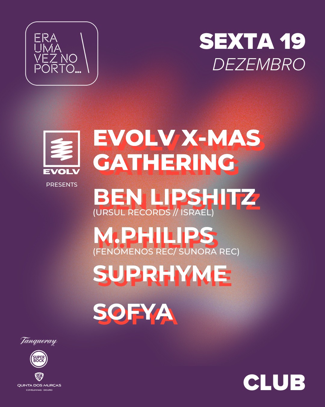 EVOLV X-MAS GATHERING … Sexta-feira, 19|12|2025 EVOLV X-MAS GATHERING 🎧 Ben Lipshitz 🎧 M. Philips 🎧 Suprhyme 🎧 Sofya . . + Adicionar ao Google Calendar Data 19 - 20 Dez 2025 Hora 23:55 - 6:00 Localização Era uma vez no Porto R. da Madeira 126, 4000-330 Porto Categorias Clubbing | NightlifeEnglish-Friendly EventsEventos ao Fim de semana Share this event Newsletter Receba comodamente no seu Email os eventos mais relevantes da cidade do Porto. Deixe este campo vazio se for humano: