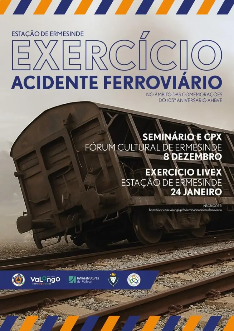 O Município de Valongo, em parceria com o Comando Sub-regional de Emergência e Proteção Civil, Corpo de Bombeiros de Ermesinde e Infraestruturas de Portugal, promove um Exercício de Acidente Ferroviário, integrado nas comemorações do 105º aniversário da Associação Humanitária dos Bombeiros Voluntários de Ermesinde.