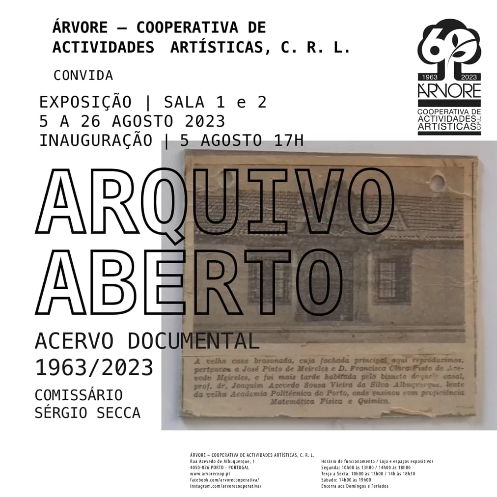 A Cooperativa Árvore inaugura no dia 5 de Agosto às 17h a Exposição Arquivo Aberto, como parte do seu Acervo Documental desde 1963, ano da criação desta instituição cultural do Porto. A Exposição faz parte das comemorações do 60º aniversário da Árvore.