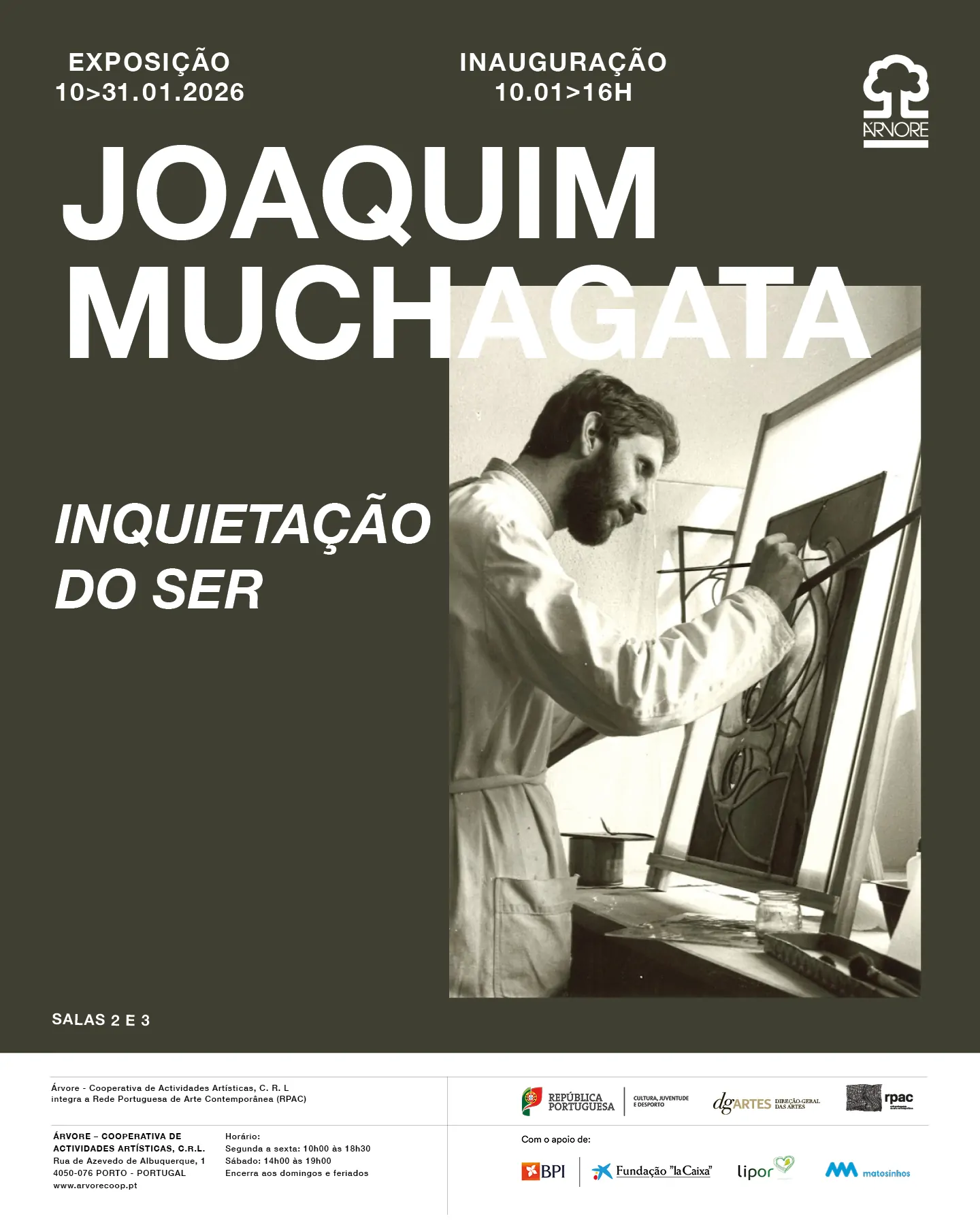 Inquietação do Ser convoca o visitante para um território onde a matéria, a memória e o conflito interior coexistem. Entre paisagens emocionais e figuras de inquietante presença, esta exposição evoca o legado do artista portuense Joaquim Muchagata (1955–2019), reunindo algumas das suas obras mais abstratas e um núcleo significativo de criações em cerâmica. A inauguração acontece no dia 10 de janeiro, às 16h, e estará patente na Árvore até 31 de janeiro.