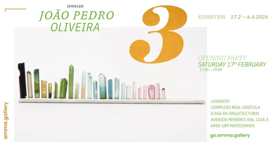 No próximo sábado, dia 17 de fevereiro, a partir das 17h, terá lugar na AMMA – Fashion Design Gallery, em Matosinhos, a inauguração da exposição dedicada ao Joalheiro João Pedro Oliveira. O que faz uma jóia? É com esta interrogação que João Pedro Oliveira apresenta a sua linguagem artística nativa, expressa em peças desenvolvidas pela G82 — Jóias & Gemas. Iniciou a sua formação de joalheiro no CINDOR, Gondomar, passou por Madrid (Universidad Autónoma de Madrid – Gemologia, Lapidação Desenho e Avaliação), Pádua (Istituto Statale D’Arte Pietro Selvatico) e regressou ao Porto onde aprofundou a sua formação em joalharia contemporânea na Escola de Joalheiros Contacto Directo. Em 2012 participou no Festival Imaginarius com o projeto “a Couve”, e em 2015 liderou a equipa que executou a chave da Torre dos Clérigos, oferta da Ordem à Câmara Municipal do Porto. Desde 2016 cria e desenvolve o seu negócio sob o nome G82 — Jóias & Gemas, oficina e negócio de venda à porta fechada. O seu trabalho abrange um grande espectro, desde encomendas religiosas a parcerias com designers e artistas. É também músico, vocalista e co-fundador dos Daguida. O evento contará ainda a presença de GON (Artista e vocalista dos ZEN) no comando da seleção musical. Vamos mais uma vez celebrar juntos a criatividade e a moda em Portugal. 🥂 A AMMA Fashion Design Gallery apresenta obras de alguns dos mais destacados designers de moda portugueses, incluindo Luis Buchinho, Pé de Chumbo, Estelita Mendonça, David Catalán, Pedro Pedro, DuarteHajime, Nopin, ANT, Davii, Carla Pontes, Ahcor, Susana Bettencourt, Alexandra Moura e fotografia de moda de Frederico Martins. Cada um destes talentosos autores contribui com uma visão única para o mundo da moda, e as suas criações estarão em destaque na AMMA Fashion Design Gallery.