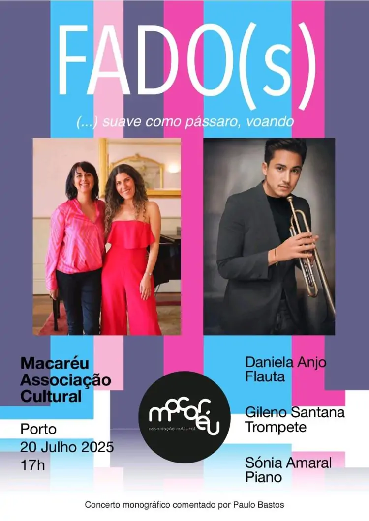 No próximo domingo, 20 de julho de 2025, às 17h00, a Macaréu – Associação Cultural recebe o concerto FADOS(…) suave como pássaro, voando, um momento singular de música contemporânea, tradição e reflexão, com estreias absolutas de obras de Paulo Bastos.
