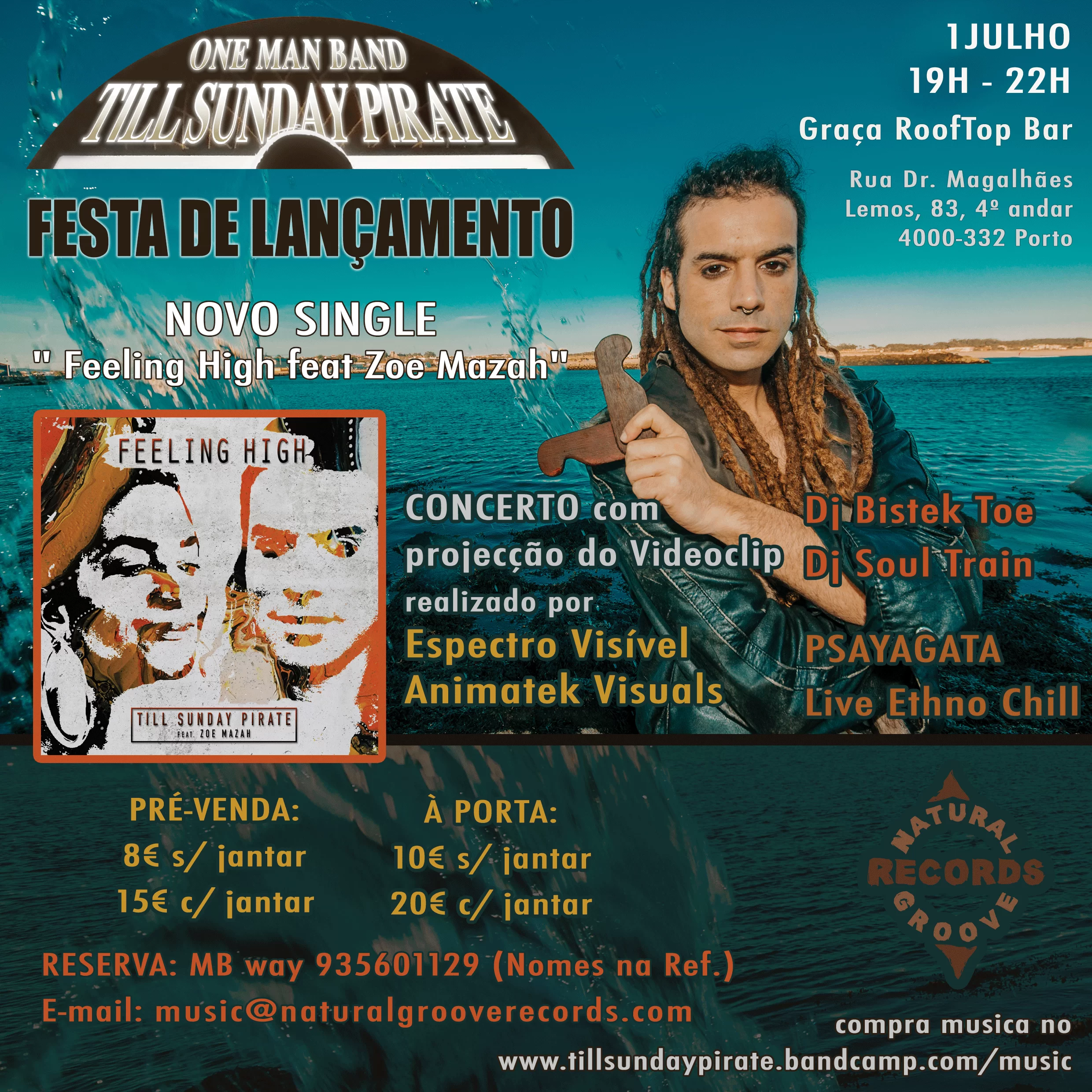 No próximo dia 01 de Julho Till Sunday Pirate, uma “one-man didgeridoo band” de Renato Oliveira com diversos instrumentos de percussão, sopro e voz, estreia o novo video single “Feeling High”, um tema que funde o reggae com o soul na voz de Zoe Mazah, artista alemã e liberiana, experienciada em unir estes dois géneros.