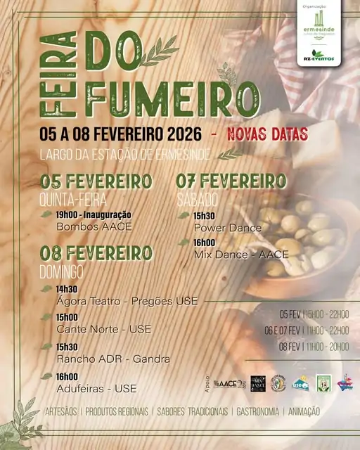 De 5 a 8 de fevereiro, o Largo da Estação de Ermesinde será o ponto de encontro para todos os amantes da boa gastronomia e das tradições. A Feira do Fumeiro promete ser um evento imperdível, com sabores tradicionais, produtos regionais, artesanato local e muita animação cultural!