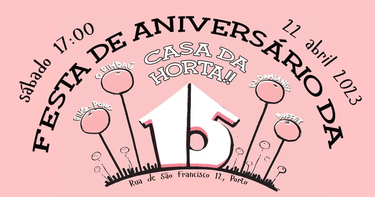 Our dear association Casa da Horta is celebrating its 15th anniversary!! And we invite everyone to our party on Saturday, with ping pong, djs damjandy and djs pimbau, buffet dinner for donation and a lot of joy in celebrating this long time of existence.