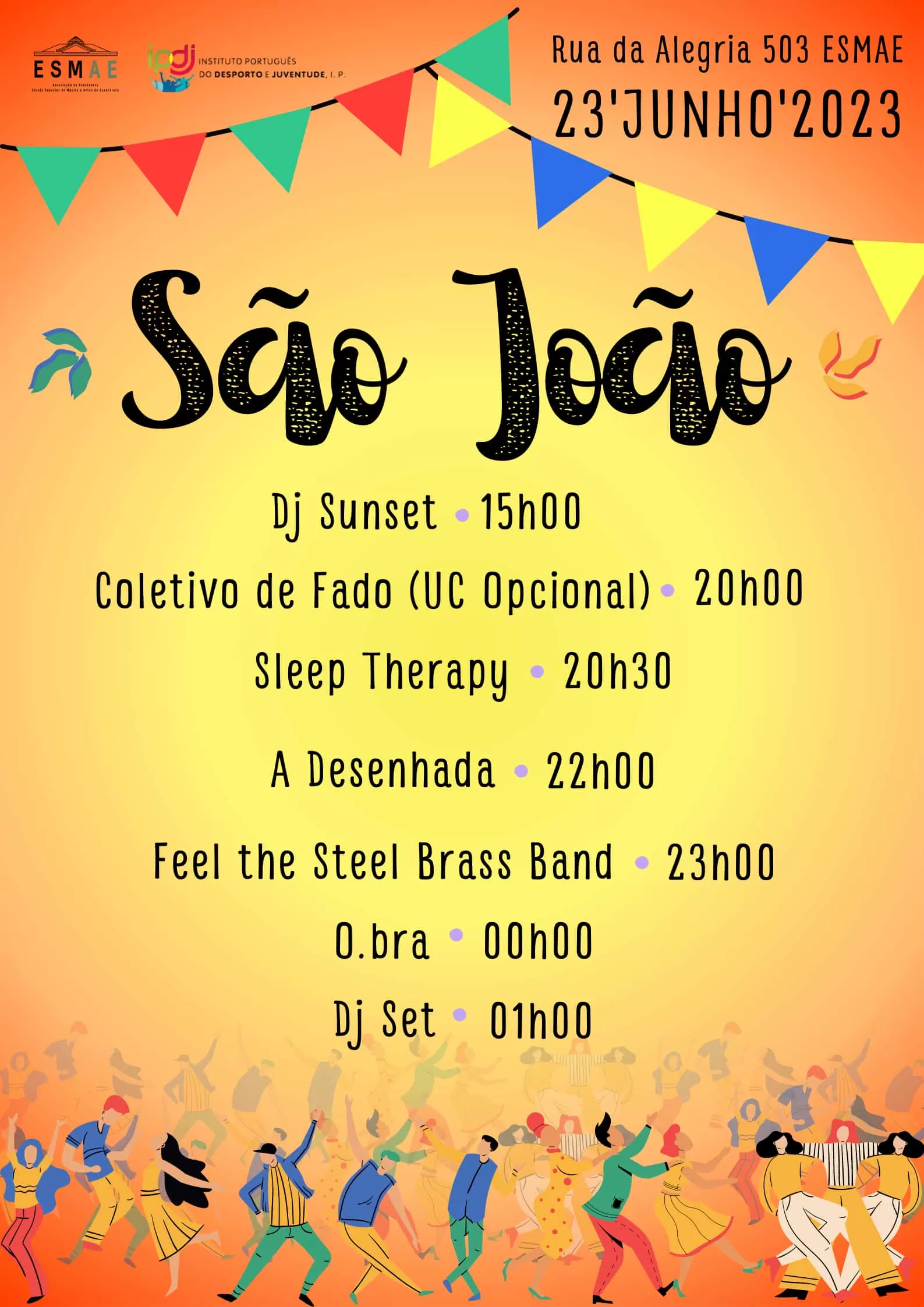 Festa de São João – Esmae Festa de São João – Esmae Tags: saojoao Data 23 - 24 Jun 2023 Desde Hora 15:00 - 6:00 Localização ESMAE - Escola Superior de Música e das Artes do Espectáculo do Porto Rua da Alegria, 503 - Porto Categorias Concertos / MúsicaEventos ao Fim de semanaEventos Gratuitos Share this event Newsletter Receba comodamente no seu Email os eventos mais relevantes da cidade do Porto. Deixe este campo vazio se for humano: